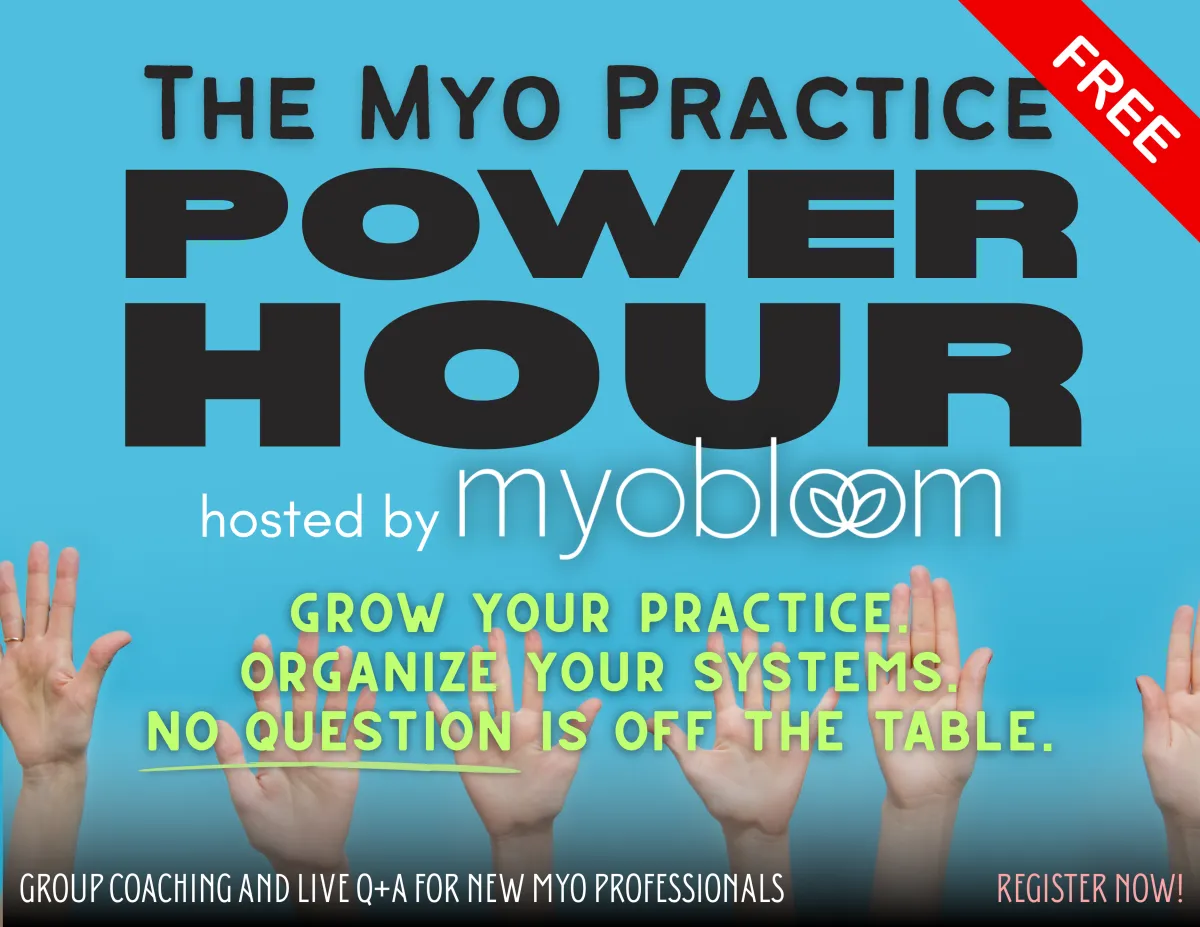 The Myo Practice Power Hour is your open coaching space to ask questions, get guidance, and connect with other myo professionals who are growing their practices, too. We’ll talk systems, structure, and strategies that make your business run smoother. It’s free, collaborative, and open to anyone who can benefit from this supportive forum.